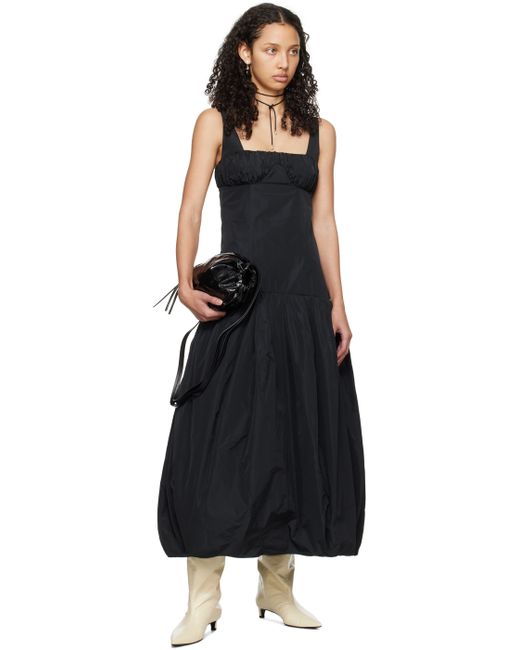 Recycled polyester taffeta dress. · Square neck · Ruching at cups and back · Pleats at dropped waist · Seam pockets · Concealed zip closure at side seam · Fixed shoulder straps · Low back · Tulle skirt-style underlay · Full taffeta lining Supplier color: Black