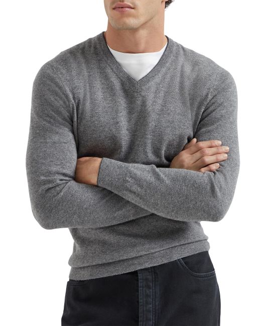 Cashmere sweater. Rib knit V-neck Rib knit cuffs and bottom band Plain stitch Hand wash only, do not bleach. Dry garment on a horizontal surface, do not tumble dry. Iron at low temperature. Alternatively, delicately dry clean garment 100% Cashmere Made in Italy. Lsd Rtw - Brunello Cucinelli Rtw > Brunello Cucinelli > Saks Fifth Avenue > Barneys. Brunello Cucinelli. Color: Dark Grey. Size: 40.