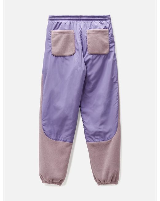 Fleece Track PantsDurable polyester fabric with fleece poly panelsElasticated waistband with hidden drawcordTwo side pockets; two rear flap pocketsLogo print at legCinched anklesFully lined in fleeceColor: Purple