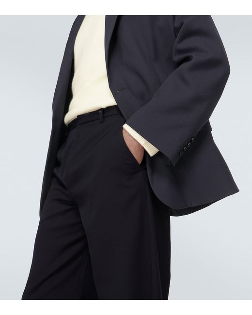 Material: 55% polyester, 45% wool. Care instructions: dry clean. Made in Bulgaria. Designer color name: Dark Navy. Lining: 50% acetate, 50% viscose. Pocket lining: 100% cotton. Closure: zipper fly, button and hook fastenings. Pockets: side slit pockets, back pockets.