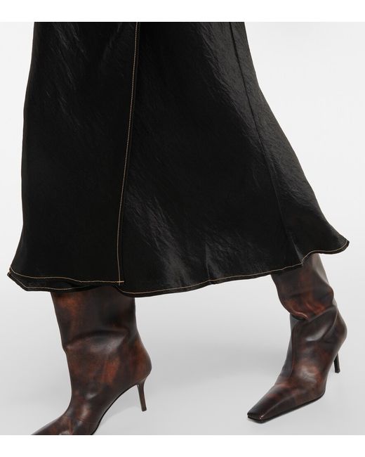 Wrap-effect Crinkled-satin Midi Skirt