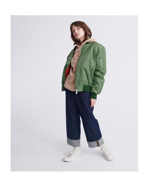 Superdry women's Olivia flight jacket. This jacket features a quilted lining within the body and placket, a zip fastening, two front popper fastened pockets and a zip pocket on one sleeve. Complete with a ribbed collar, cuffs and hem and a metal Superdry logo badge on the sleeve pocket.