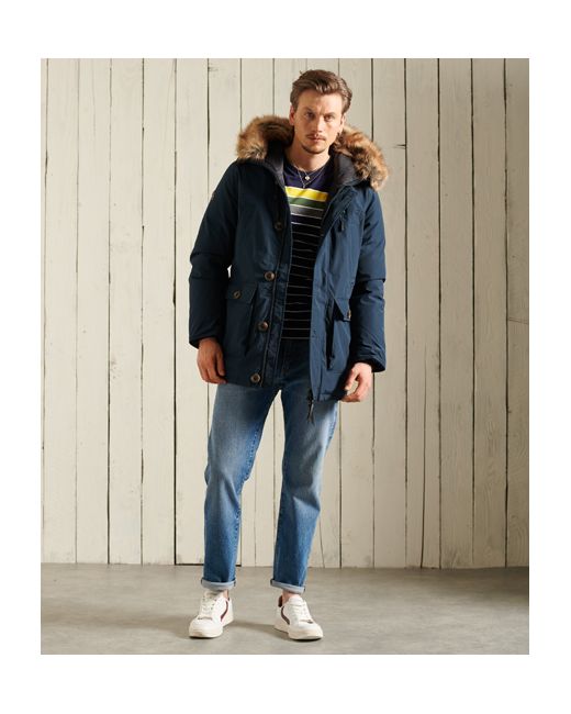 Our classic Rookie Parka Coat has had an update, introducing the Rookie Down Parka Coat featuring a zip and button fastening, four pocket design, 80/20 responsible down filling and faux fur trim. Zip and button fastening four pocket design Double elasticated cuff Removable faux fur trim Drawstring hood Responsible duck down filling Superdry patch logo Superdry is certified by the Responsible Down Standard to confirm that our down filled products are sourced to ensure animal welfare.
