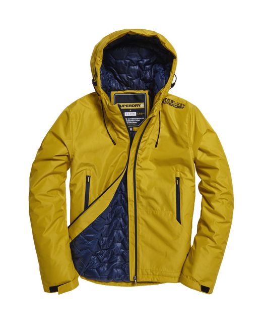 Superdry men's padded Elite jacket. This padded jacket features a bungee cord adjustable hood and hem, a main zip fastening and elasticated cuffs with a hook and loop fastening. This jacket also features two zip fastened pockets, two pouch pockets and one inside zip fastened pocket. Finished with a textured Superdry logo on one shoulder, a rubber Superdry Elite logo badge on one sleeve and a Superdry logo patch above the hem.