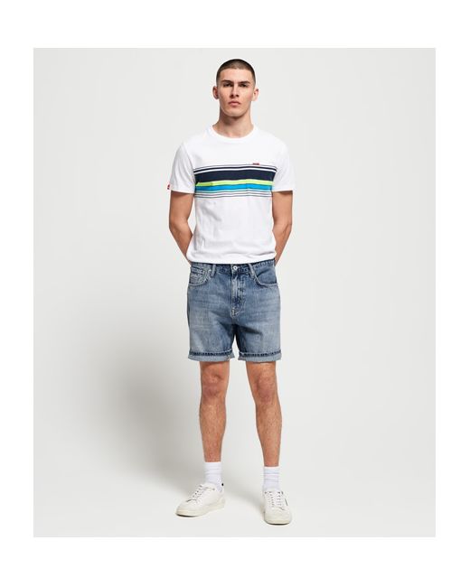 Superdry men's Conor taper shorts. Denim shorts are a classic, and the Conor taper shorts are just the wardrobe refresh you need. With a zip fly, five pocket design and belt loops, the shorts are completed with a logo design on the coin pocket and logo patch on the rear of the waistband. Pair with a button down shirt for a look that works anywhere.