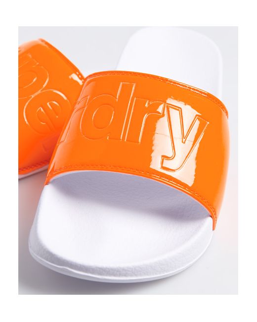 Superdry women's Superdry Pool Sliders. Bring a splash of colour to the pool this season with these pool sliders, featuring moulded soles and a wide strap for comfort and finished with an embossed Superdry logo on the strap along with Superdry branding on the side and on the sole. S - UK 3-4, EU 36-37, US 5-6 M - UK 5-6, EU 38-39, US 7-8 L - UK 7-8, EU 40-41, US 9-10