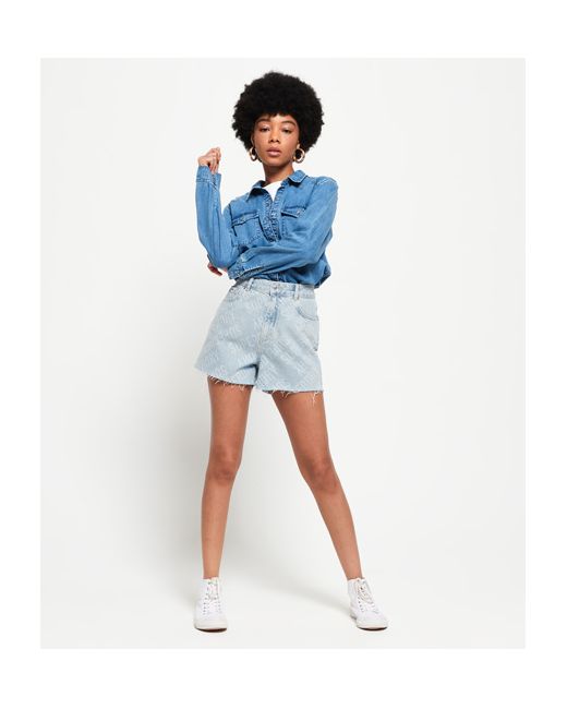 Superdry women's Ruby cut off shorts. This classic pair of denim shorts features a five pocket design, belt loops and a zip and button fastening. The Ruby shorts also feature a distressed hem and have been completed with a logo patch on the coin pocket and leather logo patch on the rear of the waistline.