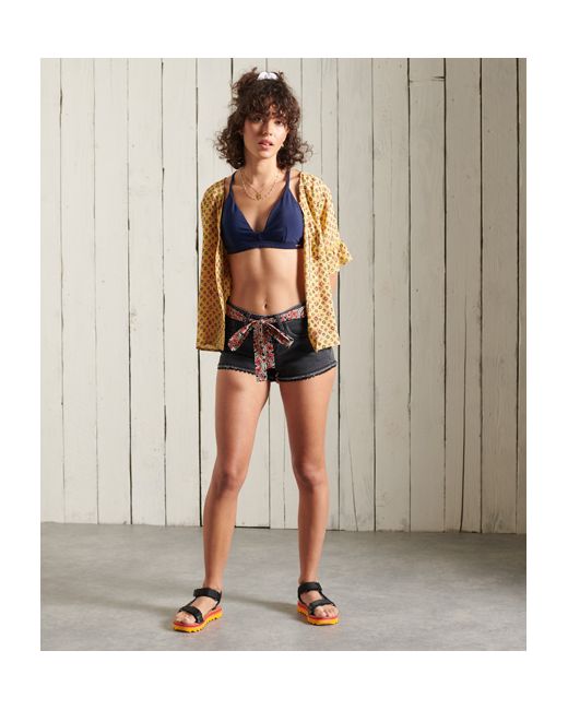 Superdry women's Lace hot short. These cute shorts feature a zip and button fastening, belt loops, and the classic five pocket design. Finished with a printed fabric belt, lace trim, and a Superdry logo patch on the waistband. The perfect shorts for those summer beach days. 5 pocket design Button and zip fastening Printed fabric belt Superdry logo patch