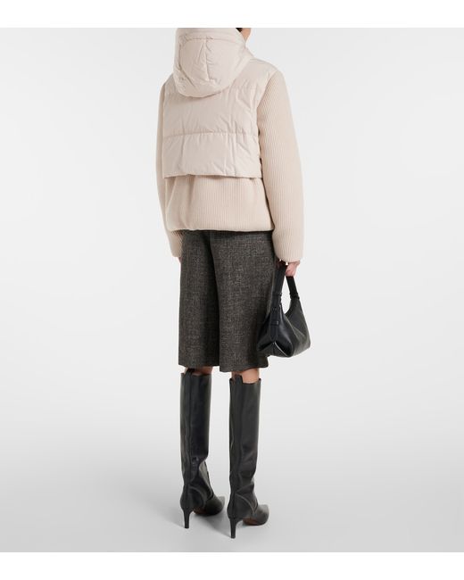 Material: 55% polyester, 45% cotton. Care instructions: dry clean. Made in Italy. Designer color name: Snow. Details: 100% leather. Material II: 100% cashmere. Material III: 100% wool. Lining: 100% polyamide. Contains non-textile parts of animal origin. Filling: 90% down, 10% feathers. Closure: zipper, snap-button fastenings. Pockets: snap-buttoned pockets. Drawstring hood.