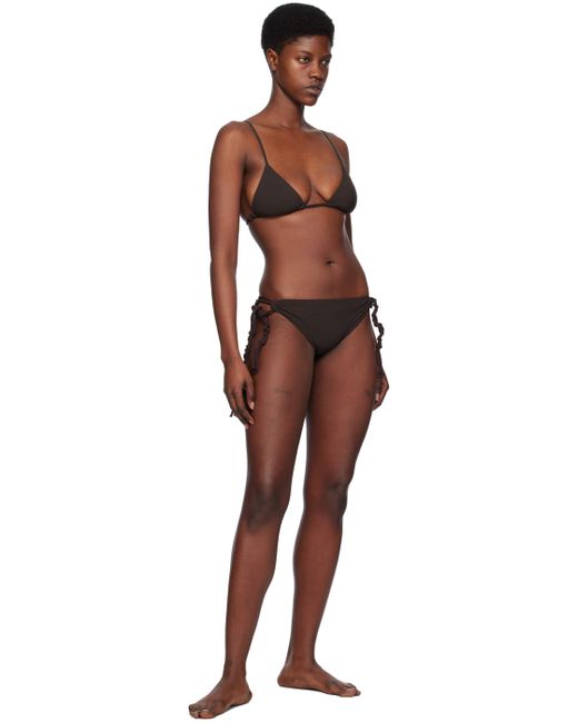 Stretch nylon jersey bikini bottom. · Extended self-tie fastening at sides · Fully lined Supplier color: Earth