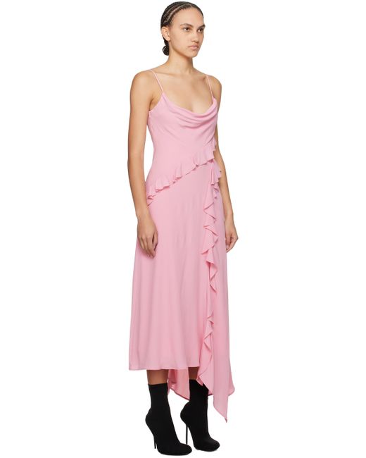 Acetate- and silk-blend georgette dress. Ruffled trim throughout. · Cowl neck · Asymmetric hem · Adjustable spaghetti straps · Concealed zip closure at side seam · Full crepe lining Supplier color: Pink