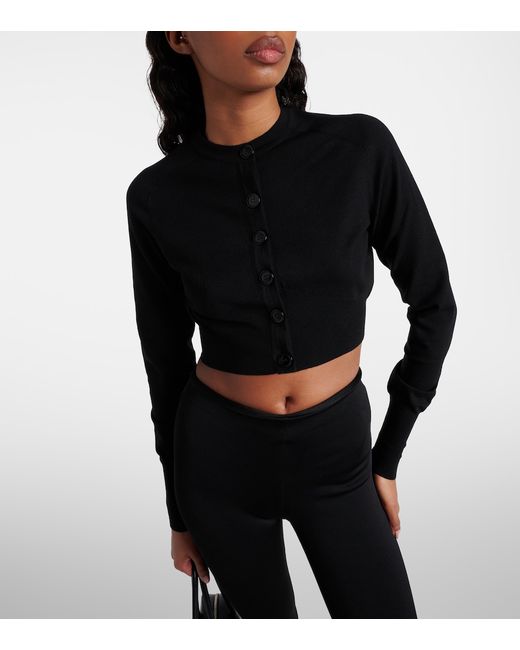 Material: 87% wool, 13% polyester. Care instructions: dry clean. Made in Italy. Designer color name: Noir Alaia. Closure: buttoned front.
