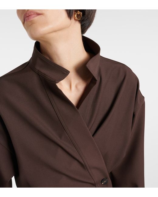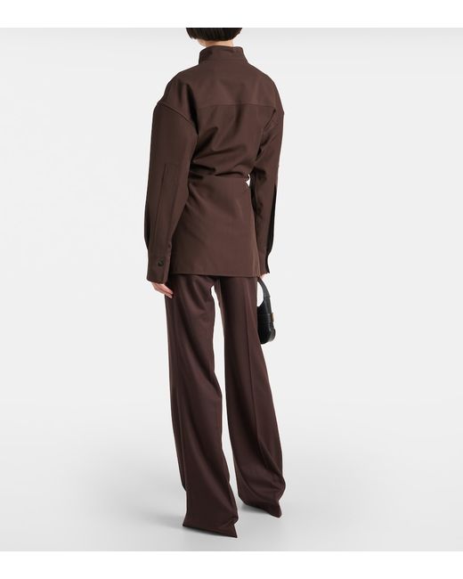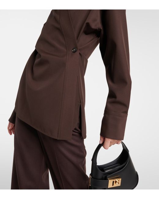Material: 100% virgin wool. Care instructions: dry clean. Made in Italy. Designer color name: Expresso. Closure: buttoned front. Contains non-textile parts of animal origin.