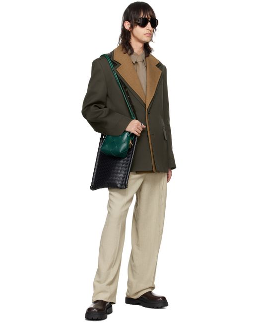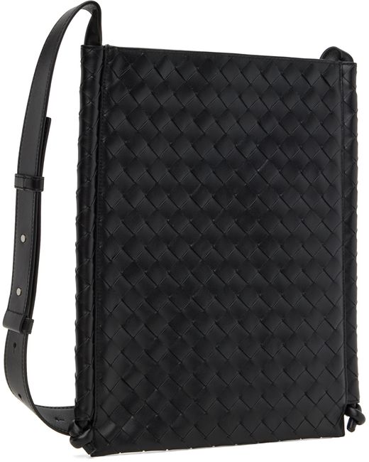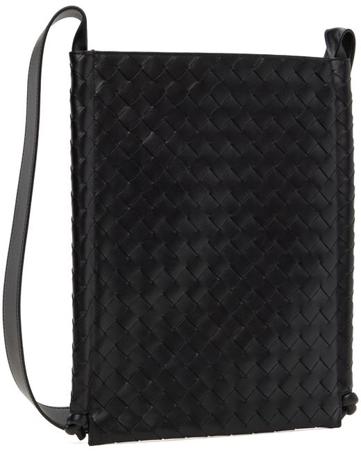 Intrecciato-woven buffed calfskin pouch in black. · Adjustable crossbody strap · Knotted detailing at sides · Magnetic closure · Patch pockets at interior · Canvas lining · Silver-tone hardware · H13.5 x W9.75 x D1.5 Supplier color: Black