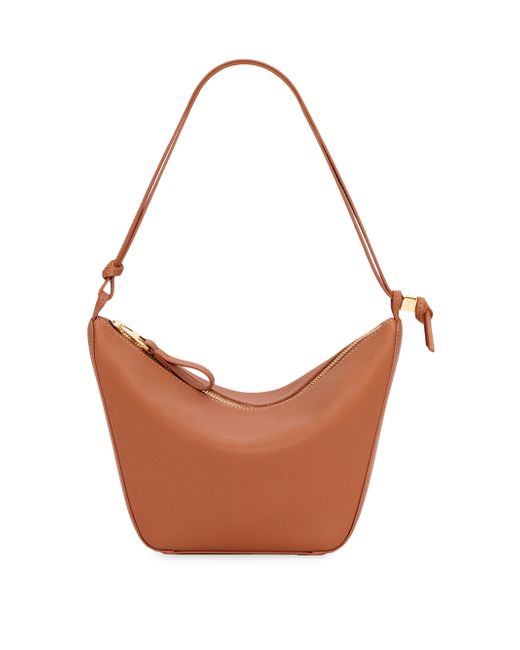 Crafted in Spain of soft calf leather, this sleek LOEWE Mini Hammock hobo bag features a knotted double-strap top handle and is finished with the brand's debossed anagram monogram at the side. Top handle Top zip closure Calf leather Made in Spain SIZE 11"W x 6.75"H x 3.75"D. Handbags - Loewe Handbags > Loewe > Saks Fifth Avenue > Barneys. LOEWE. Color: Tan.