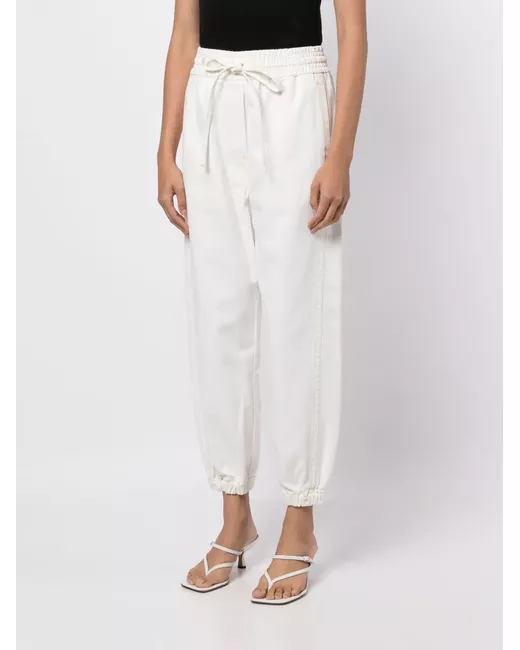ivory white cotton high waist elasticated drawstring waistband two side inset pockets boyfriend cut elasticated ankles cropped leg