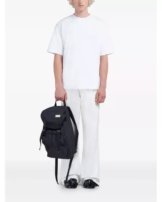 black appliqué logo single top handle adjustable shoulder straps foldover top buckle fastening front zip-fastening pocket top drawstring fastening internal zip-fastening pocket main compartment