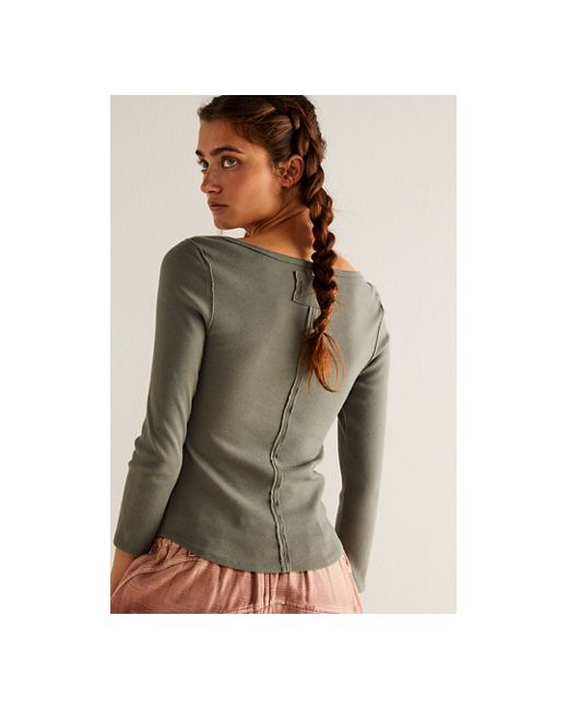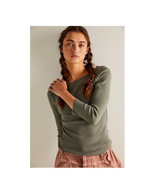 A true staple from our We The Free collection, this wear-everywhere top is featured in a classic silhouette perfect for this season to the next. **Fit:** Slim, slightly cropped silhouette **Features:** Wide boat neckline, curved cropped hemline, ¾ sleeves, cozy ribbed fabrication **Why We ❤ It:** Effortlessly layered over easy basics or sleek on its own, this style has endless ways to wear. We The Free Lucy Layering Top at Free People in Mulled Basil, Size: Medium