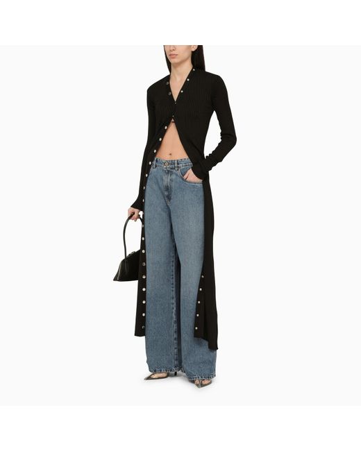 Black stretch viscose long cardigan from The Attico featuring a snap button front fastening, long sleeves and a slim fit.