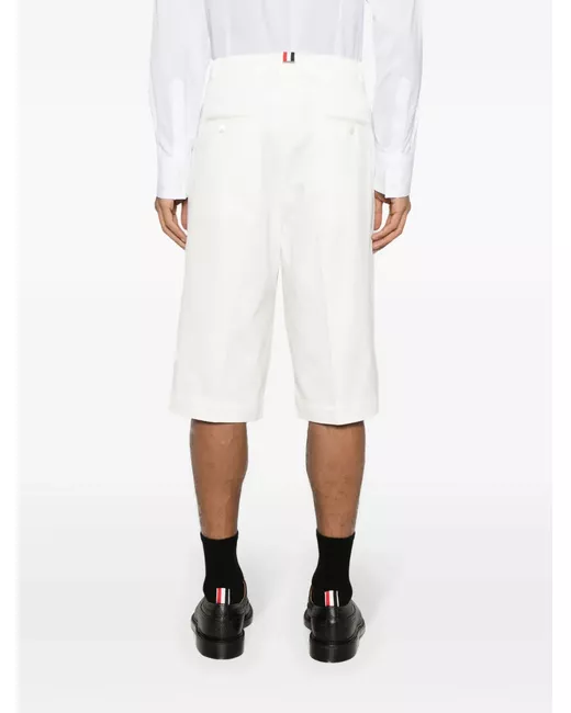 white cotton twill weave pleat detailing dart detailing to the rear logo pull-tab to the rear button fly fastening concealed hook and button fastening belt loops mid-rise straight leg slip pockets to the sides two rear button-fastening jetted pockets knee-length straight hem unlined
