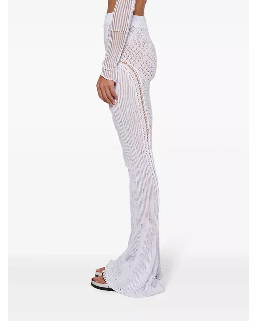 milk white cotton open knit slip-on style high-waisted straight leg straight hem