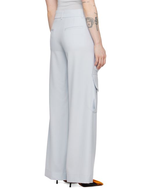 Virgin wool gabardine trousers. Webbing trim throughout. · Belt loops · Four-pocket styling · Zip-fly · Cargo pockets · Logo embroidered at front · Darts at back Supplier color: Arctic ice