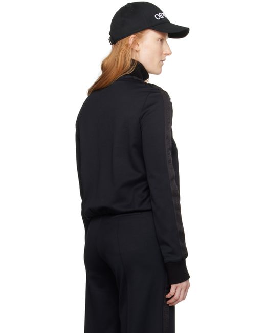 Paneled stretch nylon twill jacket. · Rib knit mock neck and cuffs · Half-zip closure · Intarsia rib knit stripes at front · Elasticized hem · Logo-woven webbing trim at sleeves Supplier color: Black/White