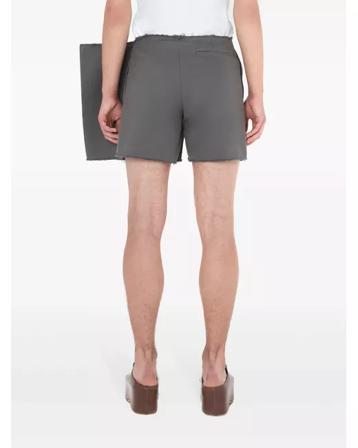 grey cotton raw-cut edge panel detailing concealed front fastening rear welt pocket slip pockets to the sides thigh-length straight hem
