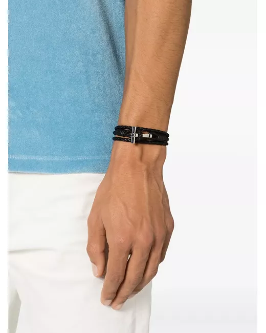 black calf leather braided strap wraparound style silver-tone hardware T-shaped toggle fastening