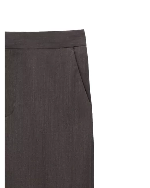 cedar brown wool blend stretch-design low-rise pressed crease hook and eye fastening extra-long length two diagonal pockets to the sides two rear welt pockets adjustable rear buckle-strap tapered leg