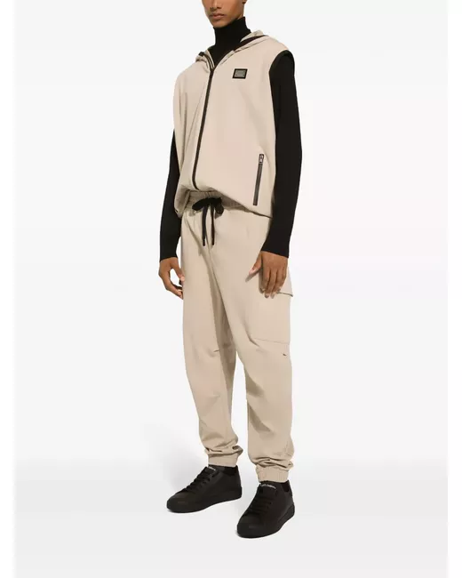 light beige stretch-cotton logo patch to the rear elasticated drawstring waistband elasticated ankles two side inset pockets two side cargo pockets two rear zip-fastening pockets