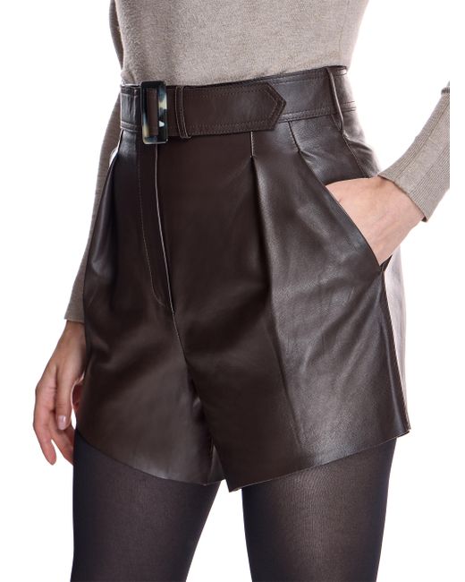 Crafted of soft leather, these belted shorts from Maximilian are cut in a high-waist silhouette with side slip pockets. Belted Side slip pockets Zip fly, button closure 100% leather Dry clean Made in Spain SIZE & FIT Model measurements: 5'10" tall Model is wearing a US size 4. Furs - Fur Salon Direct > Maximilian > Saks Fifth Avenue > Barneys. Maximilian. Color: Brown. Size: XS.