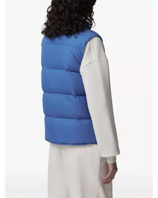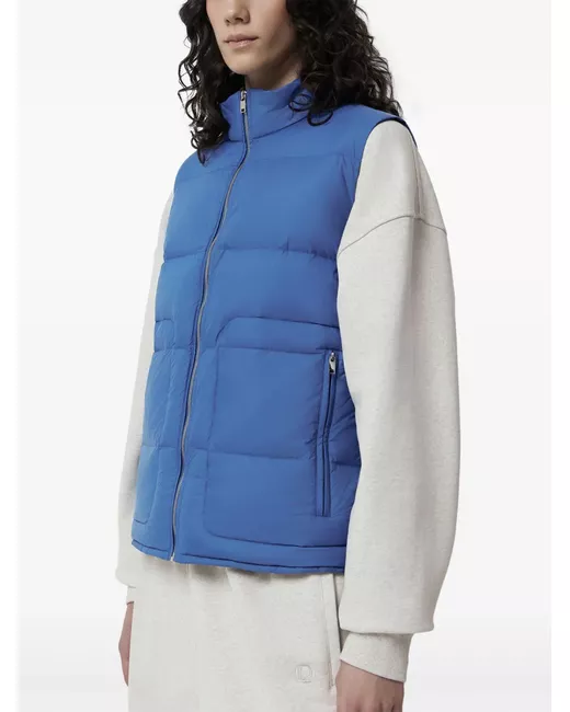 blue down-feather filling water-resistant padded design packable design lightweight funnel neck front zip fastening sleeveless two side zip-fastening pockets straight hem This item is made from at least 50% recycled or upcycled materials. For recycled synthetic clothing products, we highly recommend using a microfibre-catching washing bag to ensure that no microplastics that can pollute water are released in the process. Learn more about what makes a product Conscious on our Conscious Criteria page