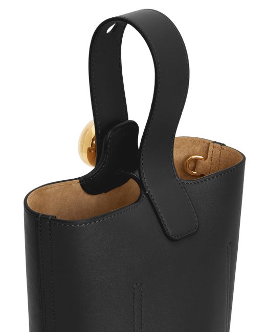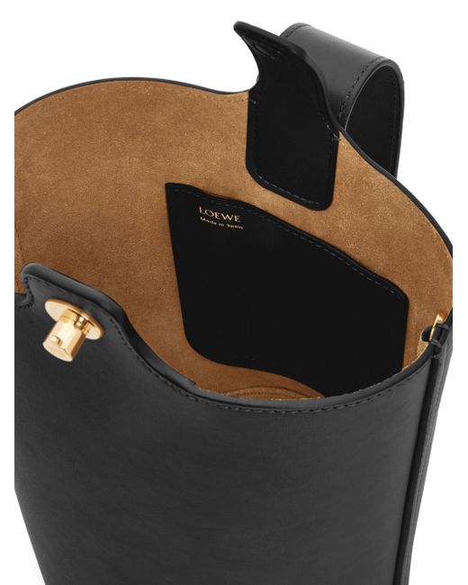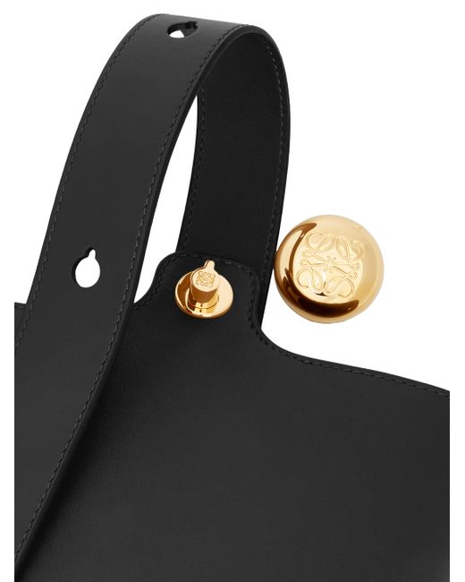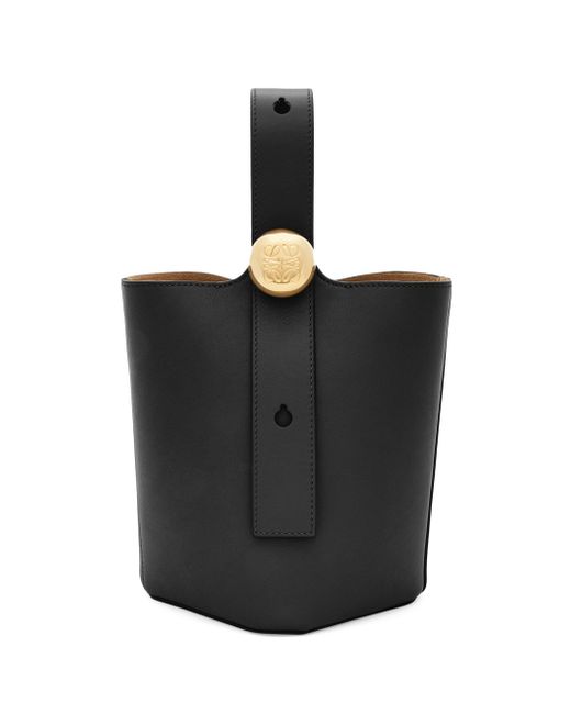 LOEWE's mini bucket bag chic and compact accessory crafted of pebbled leather. The carry features an adjustable handle with engraved hardware and a magnetic closure, ensuring your essentials are secure and stylishly stowed. Adjustable handle Interior: one slip pocket Magnetic closure Leather Made in Spain SIZE About 11"W x 9.5"H x 9.25"D Strap: about 28"L. Handbags - Loewe Handbags > Loewe > Saks Fifth Avenue > Barneys. LOEWE. Color: Black.