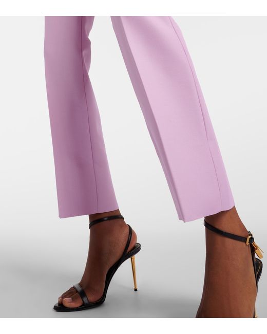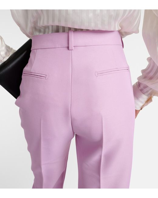 Material: 57% wool, 43% viscose. Care instructions: dry clean. Made in Italy. Designer color name: Light Pink. Lining: 50% cupro, 50% silk. Contains non-textile parts of animal origin. Closure: zipper fly, button and hook fastenings. Belt loops. Pockets: slant pockets, back pockets.