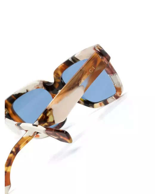 white/coffee brown recycled acetate abstract pattern print wayfarer frame blue tinted lenses logo-engraved arm curved tips These glasses come with a protective case.