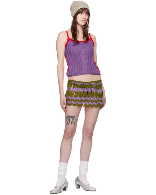Cable knit cotton tank top. · Paneled construction · Rib knit scoop neck and armscyes · Rolled edge at hem · Fixed spaghetti straps Supplier color: Purple/Red