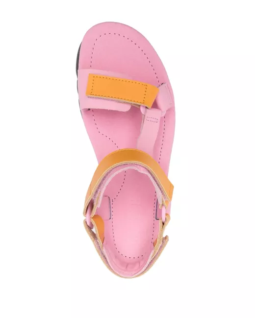 rose pink/carrot orange recycled polyester/calf suede/calf leather open toe ankle touch-strap fastening front touch-strap fastening branded leather insole EVA midsole platform sole ridged rubber sole