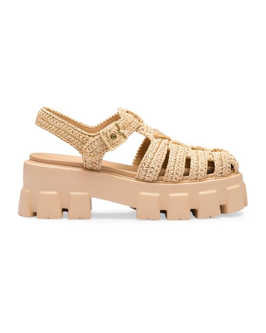The iconic Monolith style is reimagined for the summer season. Sophisticated crochet and fine artisan workmanship meet in this sporty design with oversized volumes. New experimentation and tradition are embodied by the distinctive details of the shoe like the metal triangle logo. Raffia-effect yarn Crochet workmanship Upper with metal buckle Enameled metal triangle logo 55mm (2.16'') rubber sole Imported. Lsd Rtw - Prada Rtw > Prada > Saks Fifth Avenue > Barneys. Prada. Color: Beige Khaki. Size: 5.