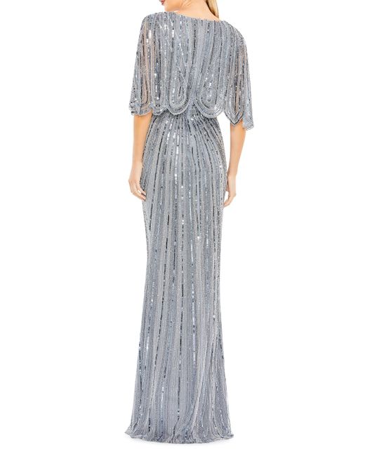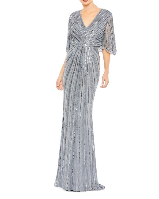 Decorated with shimmering sequins, this stunning gown from Mac Duggal flaunts a V-neck and flutter sleeves V-neck Flutter sleeves Back-zip closure 100% polyester Spot clean Imported SIZE & FIT About 61" from shoulder to hem Model measurements: 5'10" tall Model is wearing a US size Small. Dress Collections - Mac Duggal > Mac Duggal > Saks Fifth Avenue > Barneys. Mac Duggal. Color: Slate Blue. Size: 6.