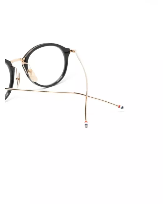 pantos-frame clear glasses from THOM BROWNE EYEWEAR featuring black, acetate, metal, pantos frame, glossy finish, clear lenses, gold-tone hardware, raised bridge, nose pads, straight arms and curved tips. These glasses come with a protective case.. All glasses from FARFETCH are sold as non-prescription frames..