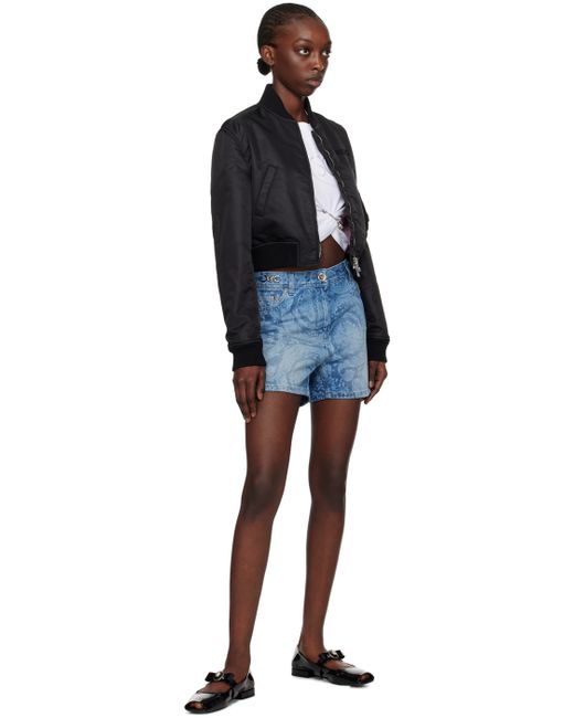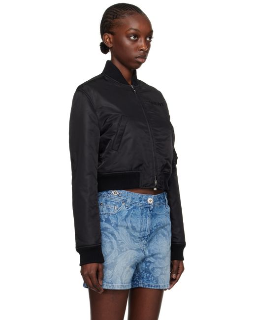 Insulated nylon twill bomber jacket. · Rib knit stand collar, hem, and cuffs · Two-way zip closure · Logo embroidered at chest · Welt pockets · Utility pocket and pen slots at sleeve · Partial twill lining · Full logo-printed satin lining · Logo-engraved silver-tone hardware Supplier color: Black