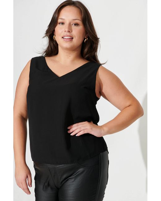 The Indy Top in Black is the must-have, versatile piece your wardrobe needs! This top is made from a lightweight, breathable fabric and is finished in a classic V-neck cut. Perfect for work, wines and weekends, pair yours with your favourite denim and sandals for an effortlessly chic look! True to size Relaxed fit Lightweight, soft, slightly textured chiffon Fully lined with breathable chiffon V-neckline Regular length Sleeveless Pull on style Please note if you previously purchased this style, size 16-22 have arrived smaller than previous delivery. For these sizes, please size up. 100% Polyester Our first model Jordan wears a size AU 8. She is 178cms in height and features a B 91cms W 66cms H 91cms Our second Model Yasmin wears a size AU 8 and is 175cm tall Women's Work Indy Top Sleeveless in Black by St.Frock