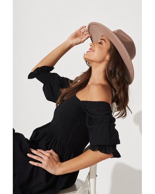 Our August + Delilah Jane Fedora Hat is oh so on trend and chic! The perfect way to finish your look and stay chic! Fixed Pu trim with Stud Brim Width - 10cm 100% Polyester Julie Fedora Hat in Brown Mocha by St.Frock