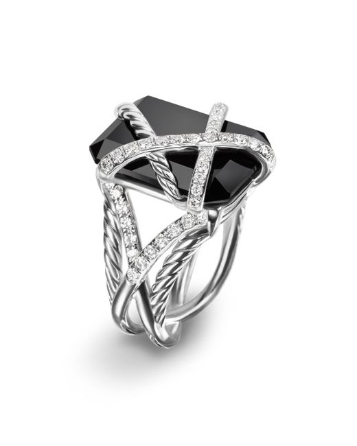 The Cable Wrap Collection redefines how a gemstone is set. Instead of using prongs or a bezel to hold the stone in place, it is elegantly wrapped with strands of Cable and diamonds. Sterling silver Lavender Amethyst, 18 x 14mm Black onyx, 18 x 14mm Sterling Silver Pavé-set diamonds, 0.60 total carat weight Ring, 20.4mm Imported ABOUT THE BRAND David, a sculptor, and his wife, Sybil, a painter, launched their innovative jewelry brand in 1980 in New York City. Since then, the American design house has pioneered cutting-edge collectionsfrom its iconic combination of sterling silver and diamonds to signature pinky rings. Today, with their son Evan, the Yurmans continue to deliver timeless pieces inspired by nature, art, ancient symbols and Manhattan's stunning architecture. Lsd Jewelry - David Yurman > David Yurman > Saks Fifth Avenue > Barneys. David Yurman. Color: Black Onyx. Size: 9.