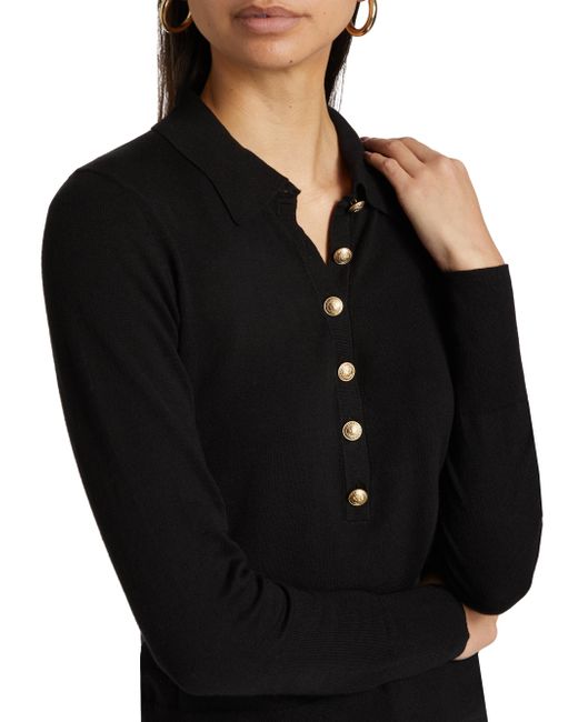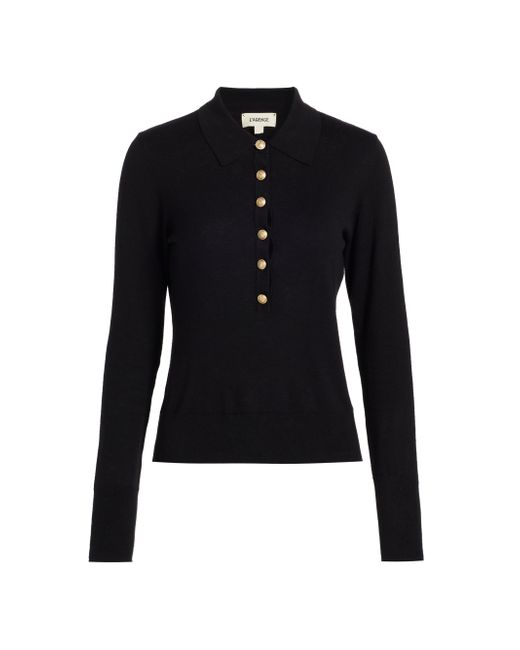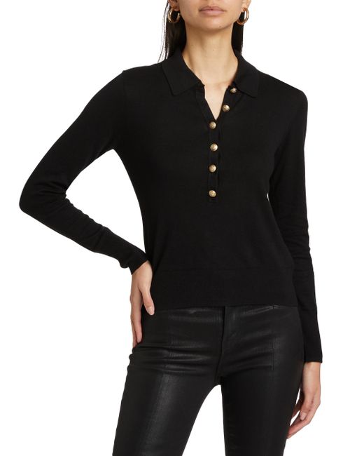 The Sterling sweater from L'AGENCE highlights a spread collar, rib-knit trim, and ornate goldtone buttons on the front placket. Spread collar Long sleeves Rib-knit trim Button-front placket 70% cotton/ 20% nylon/ 10% silk Dry clean Imported SIZE & FIT About 22.5" from shoulder to hem Model measurements: 5'10" tall Model is wearing a US size Small ABOUT THE BRAND Founded in 2008, L'Agence marries Southern California ease with chic Parisian style. Using luxurious fabrics, the Los Angeles-based label delivers feminine collections that are both timeless and versatile. In 2015, the label launched a denim line in a range of sleek, impeccably tailored cuts. Contemporary Sportswear - Workshop > L'agence > Saks Fifth Avenue > Barneys. L'AGENCE. Color: Black Gold. Size: XS.
