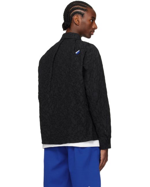 Stretch cotton- and polyester-blend cloqué shirt. · Spread collar · Concealed button closure · Patch pocket · Vented side seams · Logo flag at cuff · Single-button barrel cuffs · Pleats at back collar · Logo flag at back Supplier color: Noir