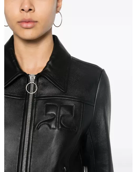 black lambskin smooth grain raised logo detail at the chest decorative buckle to the front pointed flat collar long sleeves cuff zips press-stud fastening cuffs two side zip-fastening pockets front two-way zip fastening