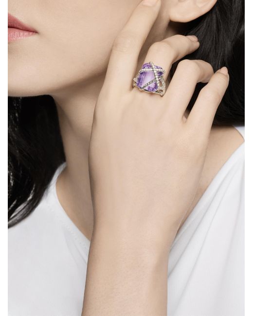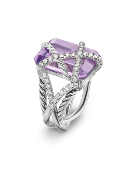The Cable Wrap Collection redefines how a gemstone is set. Instead of using prongs or a bezel to hold the stone in place, it is elegantly wrapped with strands of Cable and diamonds. Sterling silver Lavender Amethyst, 18 x 14mm Black onyx, 18 x 14mm Sterling Silver Pavé-set diamonds, 0.60 total carat weight Ring, 20.4mm Imported ABOUT THE BRAND David, a sculptor, and his wife, Sybil, a painter, launched their innovative jewelry brand in 1980 in New York City. Since then, the American design house has pioneered cutting-edge collectionsfrom its iconic combination of sterling silver and diamonds to signature pinky rings. Today, with their son Evan, the Yurmans continue to deliver timeless pieces inspired by nature, art, ancient symbols and Manhattan's stunning architecture. Lsd Jewelry - David Yurman > David Yurman > Saks Fifth Avenue > Barneys. David Yurman. Color: Lavender Amethyst. Size: 6.5.