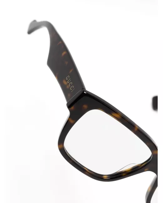 Havana brown acetate tortoiseshell effect rectangle frame clear lenses lens decal logo-engraved arm straight arms curved tips These glasses come with a protective case. All glasses from FARFETCH are sold as non-prescription frames.